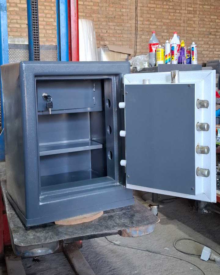 گاوصندوق ایران کاوه همچنان از نامش مشخص است محصول گروه صنعتی ایرانکاوه (شرکت گنجینه سازه) این محصول دارای ایمنی متوسط و جزء دسته صندوق های ضد سرقت نیست و جهت نگهداری اشیاء قیمتی اعم از پول، طلا و … مناسب نمی باشد (برای نگهداری اسناد، مدارک و … استفاده شود) دارای طراحی های مختلف استفاده در اداره جات شرکت، املاک، منزل و… کاربرد دارد) مقاوم دربرابر آتش سوزی با درجه حرارت ۳۰۰درجه داری رنگ و ابعاد های مختلف با رمز دهی مکانیکی و دیجیتالی و کلیدی قابلیت نصب پایه صندوق ابعاد فضای داخل مناسب برگه a4 ، پوشه، زونکن، لپتاپ و … این محصول دارای گارانتی شرکت گنجینه سازه میباشد برای ایمنی بالاتر از محصولات دیگر فروشگاه دیدن نمائید.